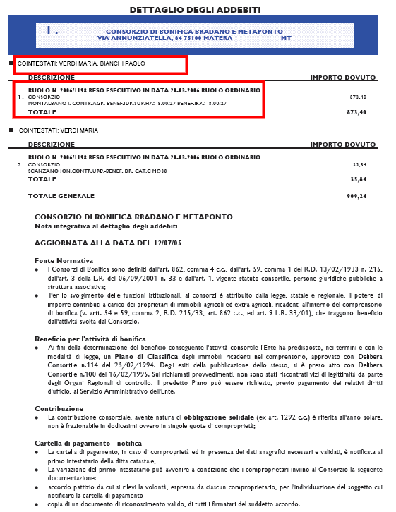 - la superficie totale soggetta a contribuzione sia per il beneficio idraulico che per l'eventuale beneficio irriguo (solo terreni).