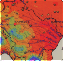 Per quanto riguarda i venti, infine, interessano soprattutto quelli provenienti da Nord e da Nord‑Ovest durante l'inverno, che provocano immediati abbassamenti di temperatura lungo la valle del Bradano. Quelli da Sud‑Est e Sud‑Ovest frequenti, invece, durante l'estate giungono, i primi, ancora umidi e non causano danni, mentre quelli da Sud‑Ovest arrivando asciutti, accrescono notevolmente l'aridità dell'aria proprio nel periodo di maggiore siccità.