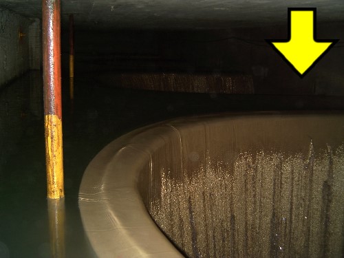 Nel cunicolo sotto la soglia sono installate due elettropompe con funzionamento automatico per il drenaggio d’eventuali acque d’infiltrazione.