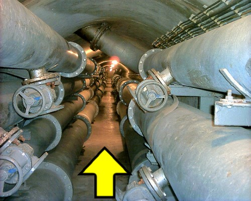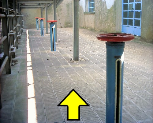 Le valvole a saracinesca sono sistemate nella cabina di manovra in spalla destra, mentre le elettropompe sui pozzi nel cunicolo inferiore.