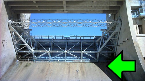 Come riserva d’emergenza delle due citate paratoie, è installata una terza a contatto strisciante, sempre della luce netta di mt. 2,70 x 2,50, manovrabile con paranco comandato a mano, di tipo scorrevole al fine di permettere lo spostamento della paratoia su una o l’altra luce, secondo le necessità.